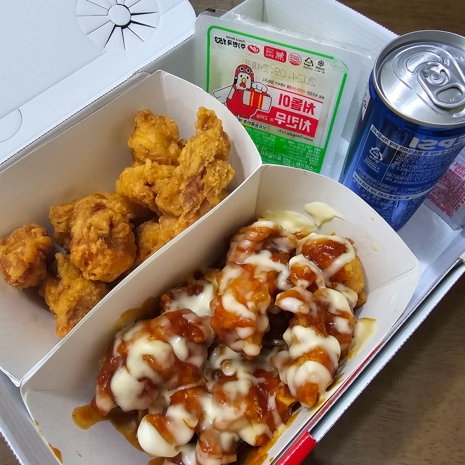 치밥이 생각나 주로 뼈를 먹는데 오늘만큼은 순살 반반을 주문했습니다.