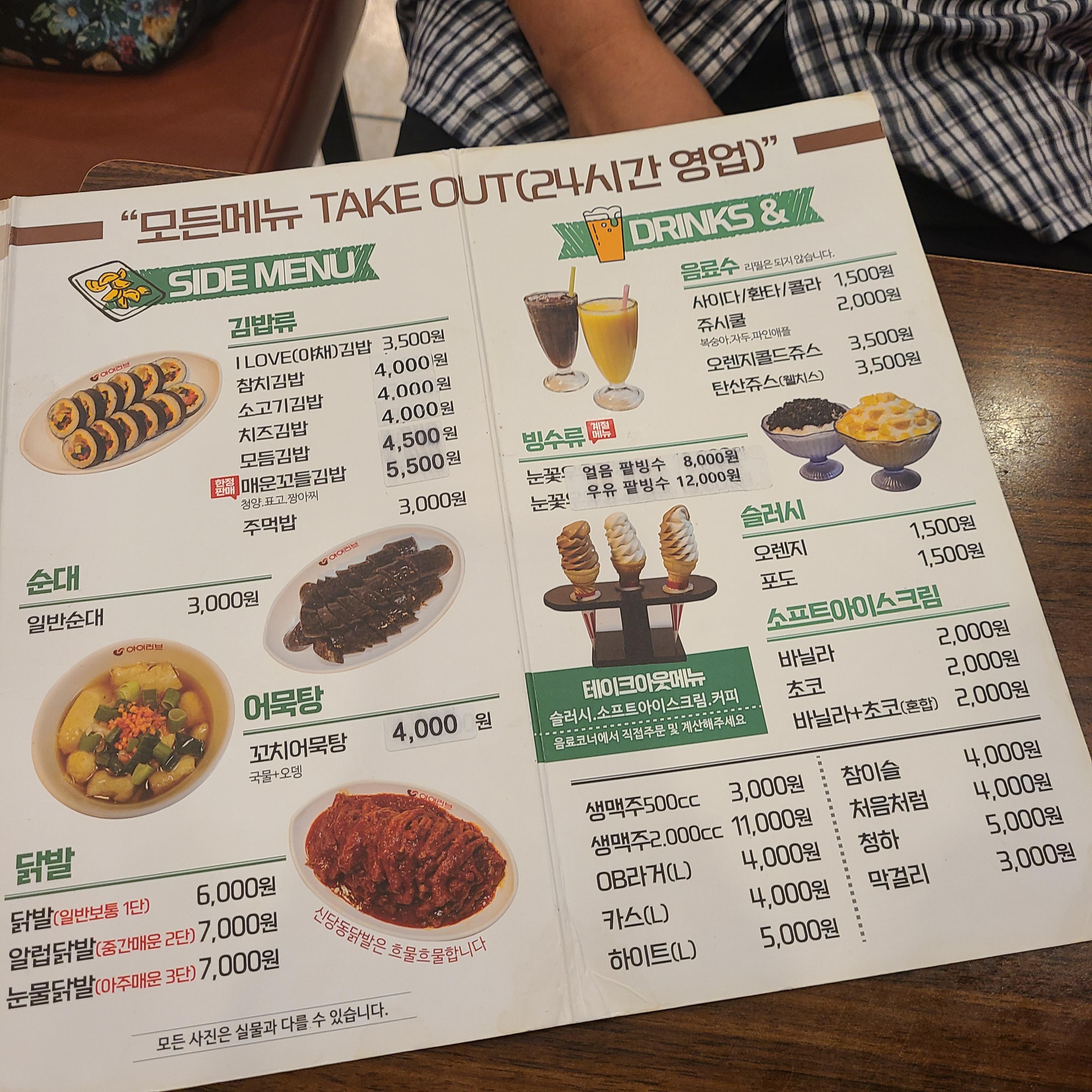 사이드 메뉴에도 김밥, 순대, 어묵탕, 닭발 등등 선택 장애가 오게끔 하네요
