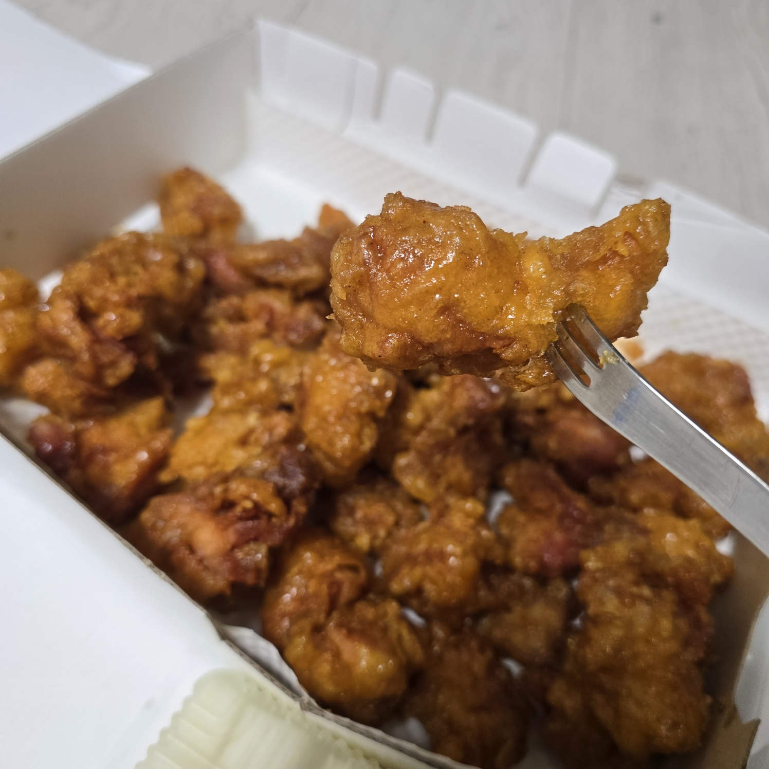 100% 닭다리살을 사용하셔서 부드럽게 닭강정을 느낄 수 있었으며..