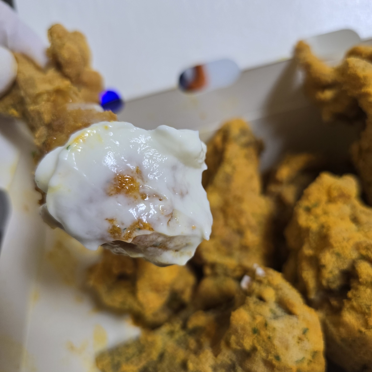 아무래도 치즈 베이스 시즈닝이다 보니 조금 물리면서, 느끼해질 때쯤 뿌링소스 찍어먹으면 확 달라지네요~