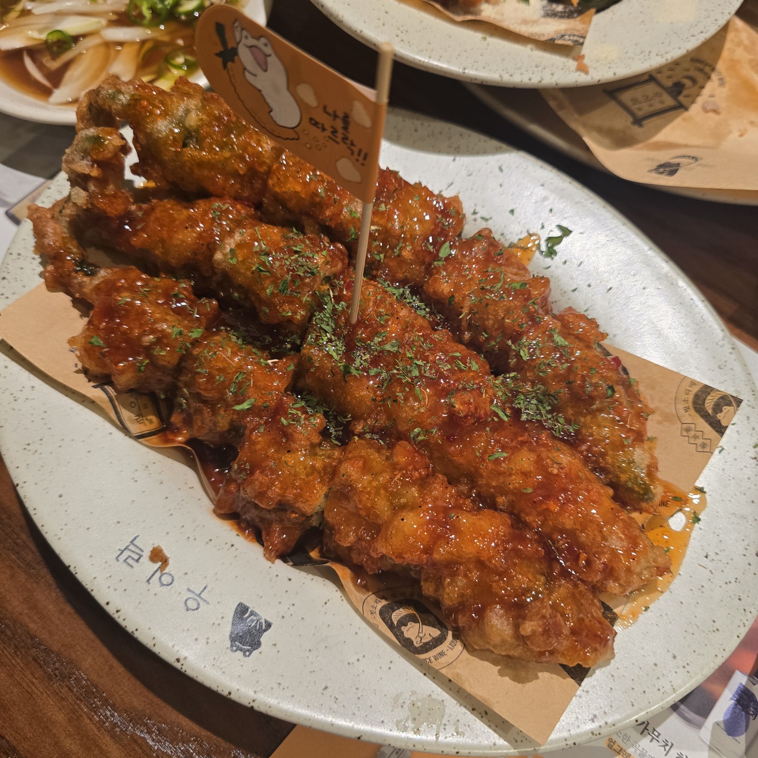 매콤 양념으로 확실히 맵긴 합니다,, 매운 거 못 드시는 분들은 시키시면 안 될 거 같네요,,