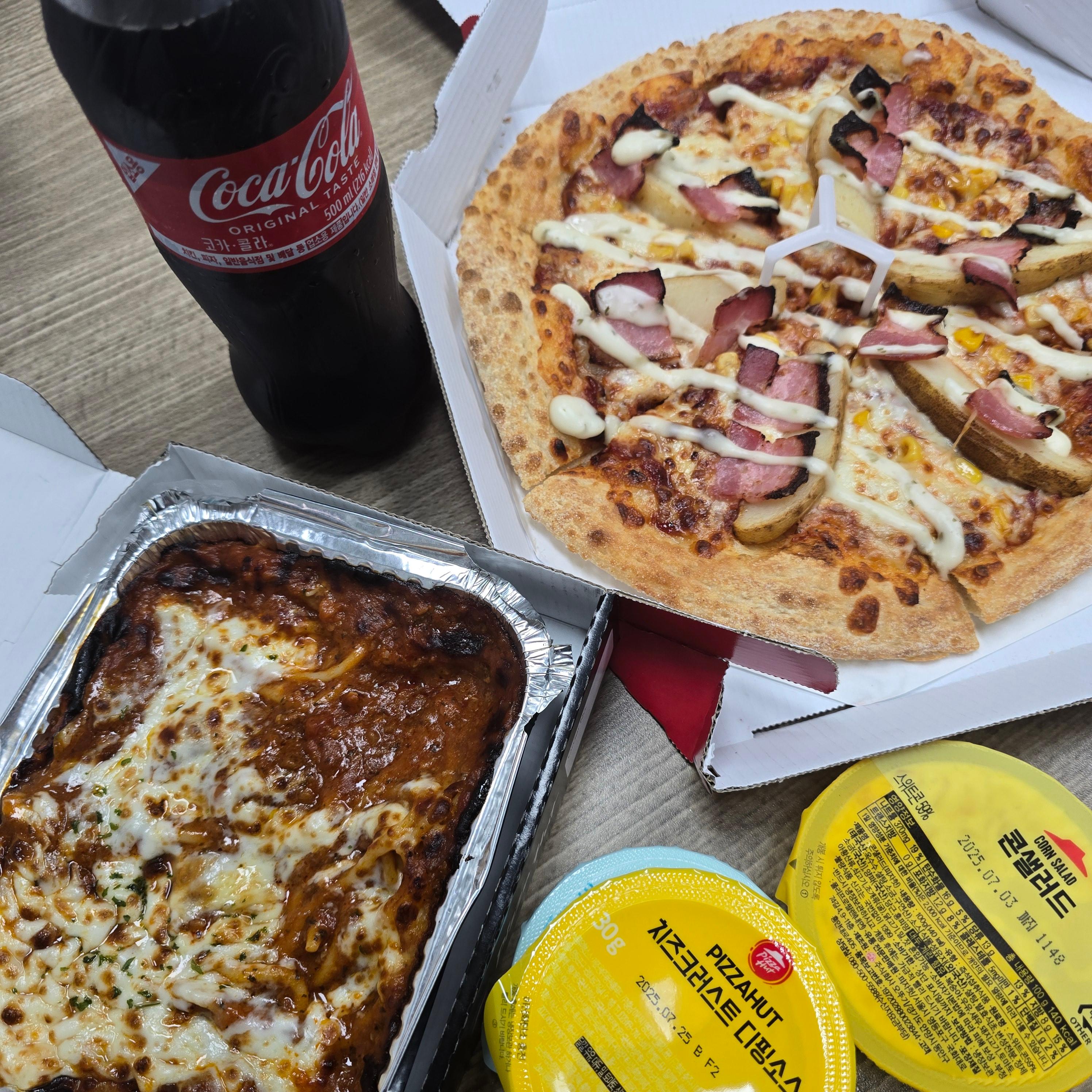 스페셜(M사이즈, 스모키미트 or포테이토) + 리치치즈파스타 + 콜라 0.5L