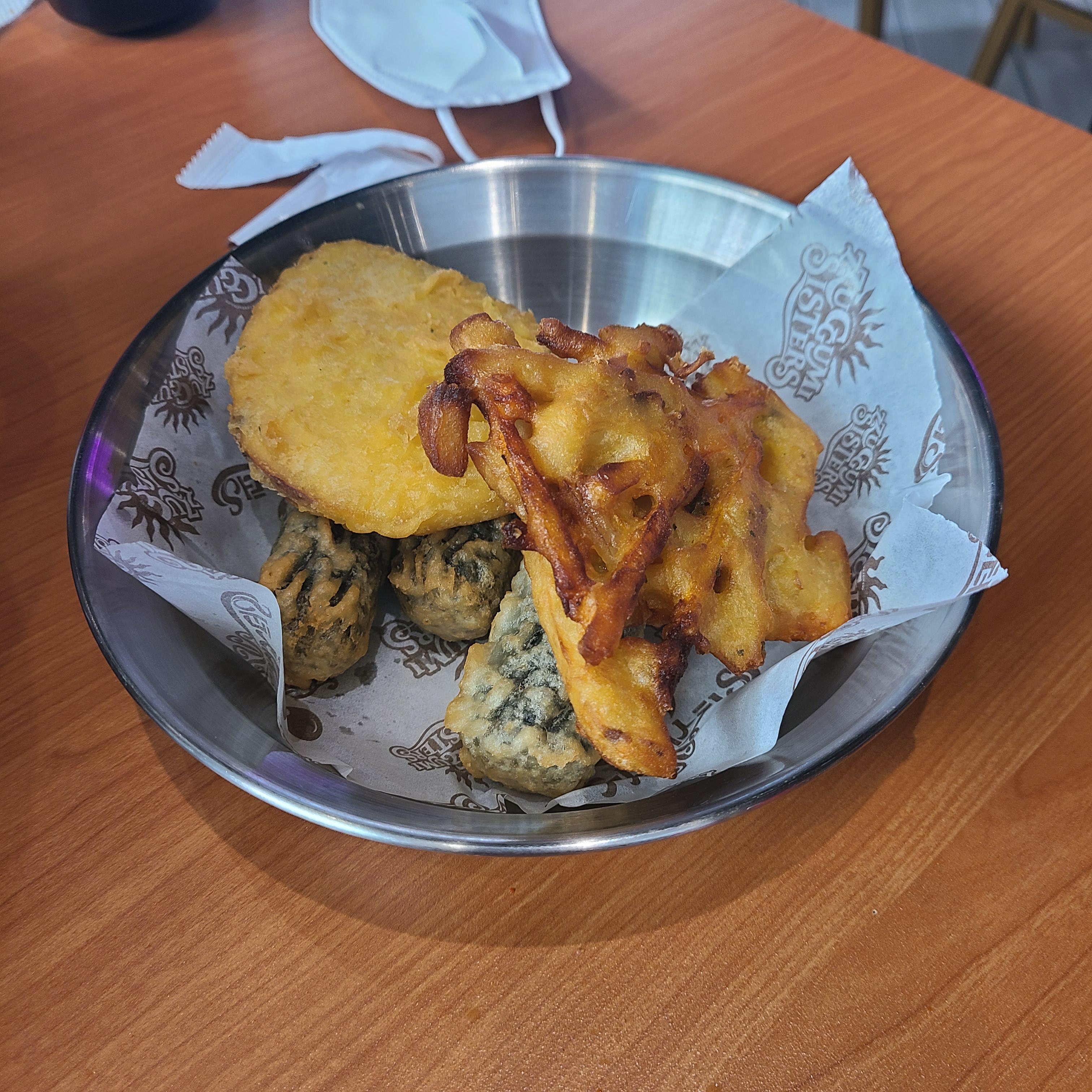 모둠튀김은 가격에 비해 조금 아쉬웠어요,,