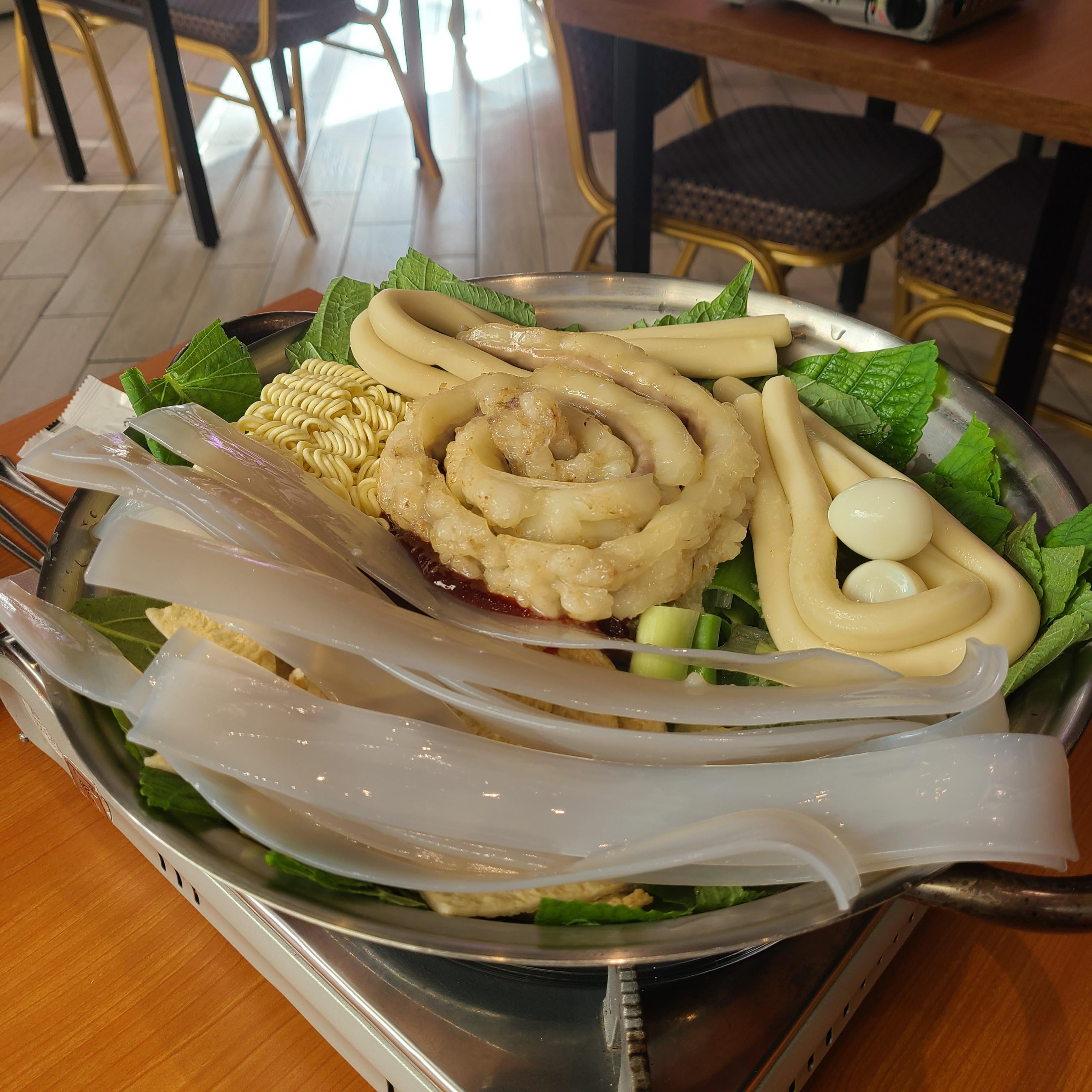 저희는 가장 Best 메뉴인 한우곱창떡볶이(2~3인) + 모둠튀김 + 라면사리, 넓적 당면 사리 추가 이렇게