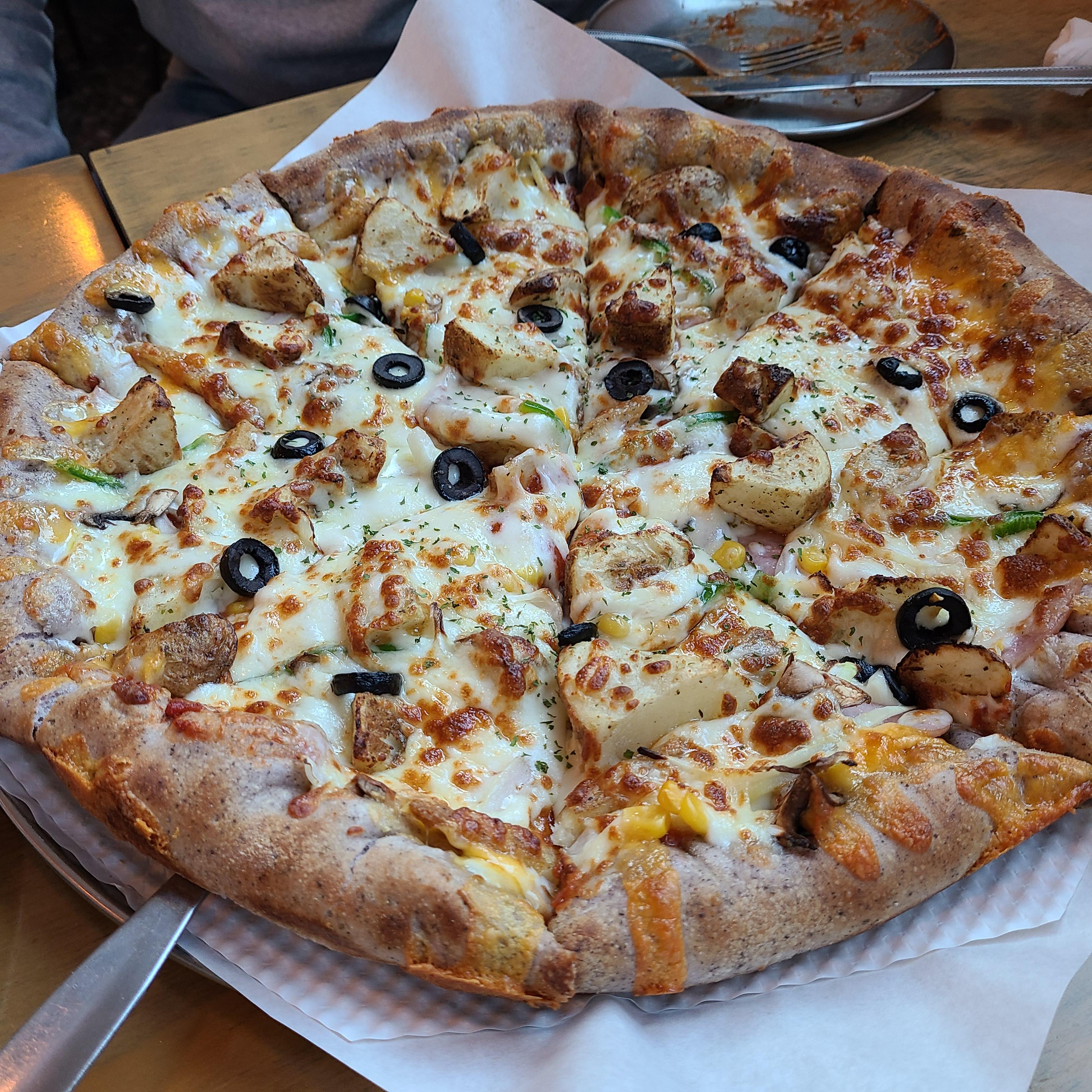 도우가 흑미 도우인지 기존 피자집과는 달랐고