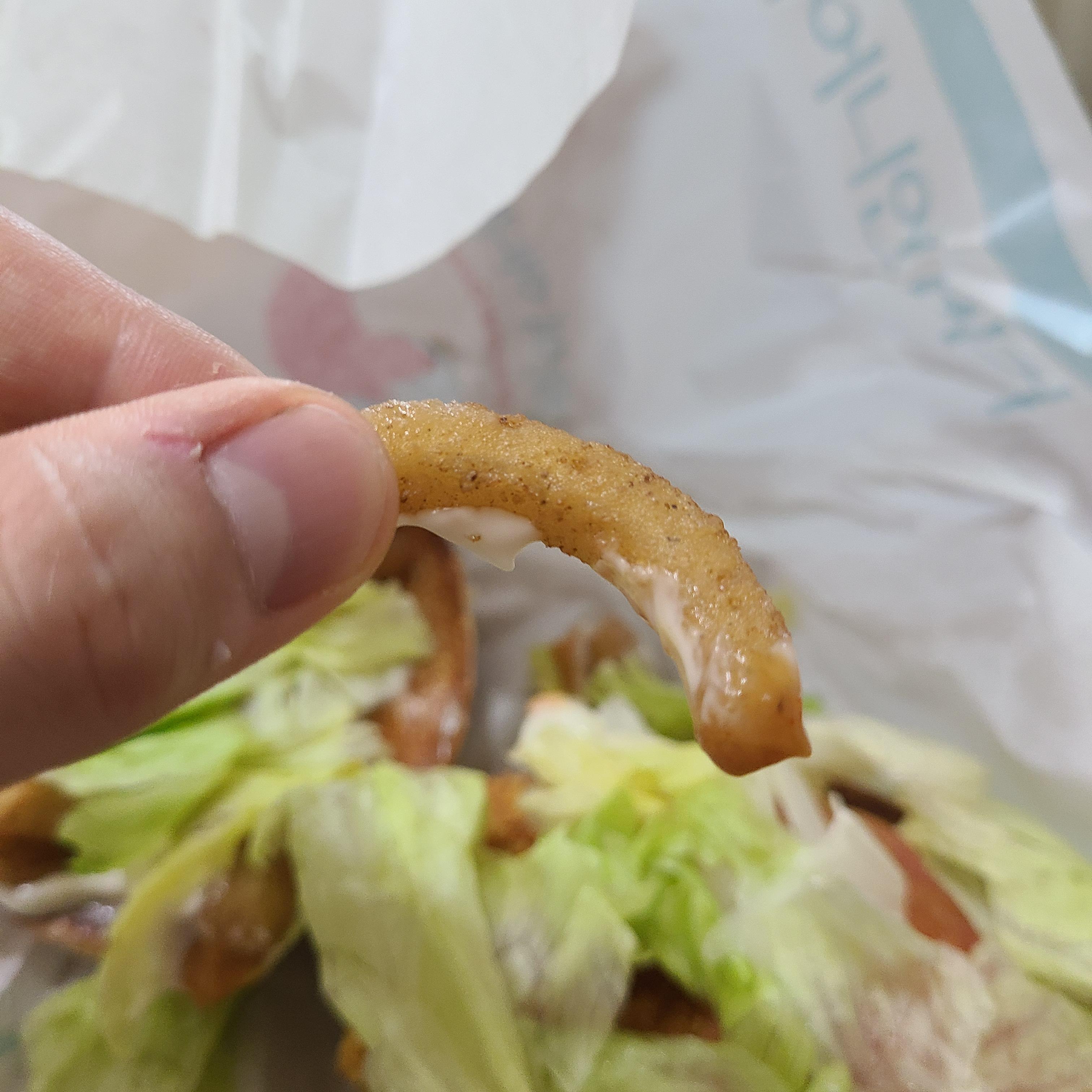 사진에서 나오는 어니언링으로 맥도날드에서 본 적이 없는 어니언링이다.