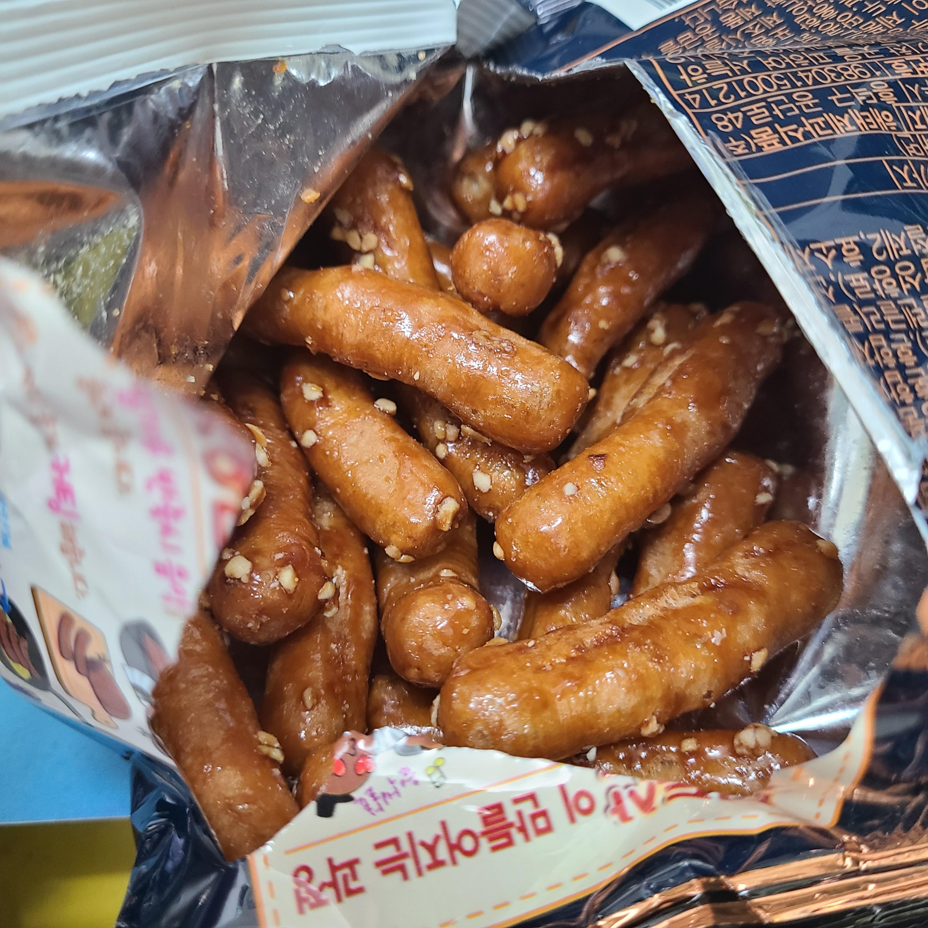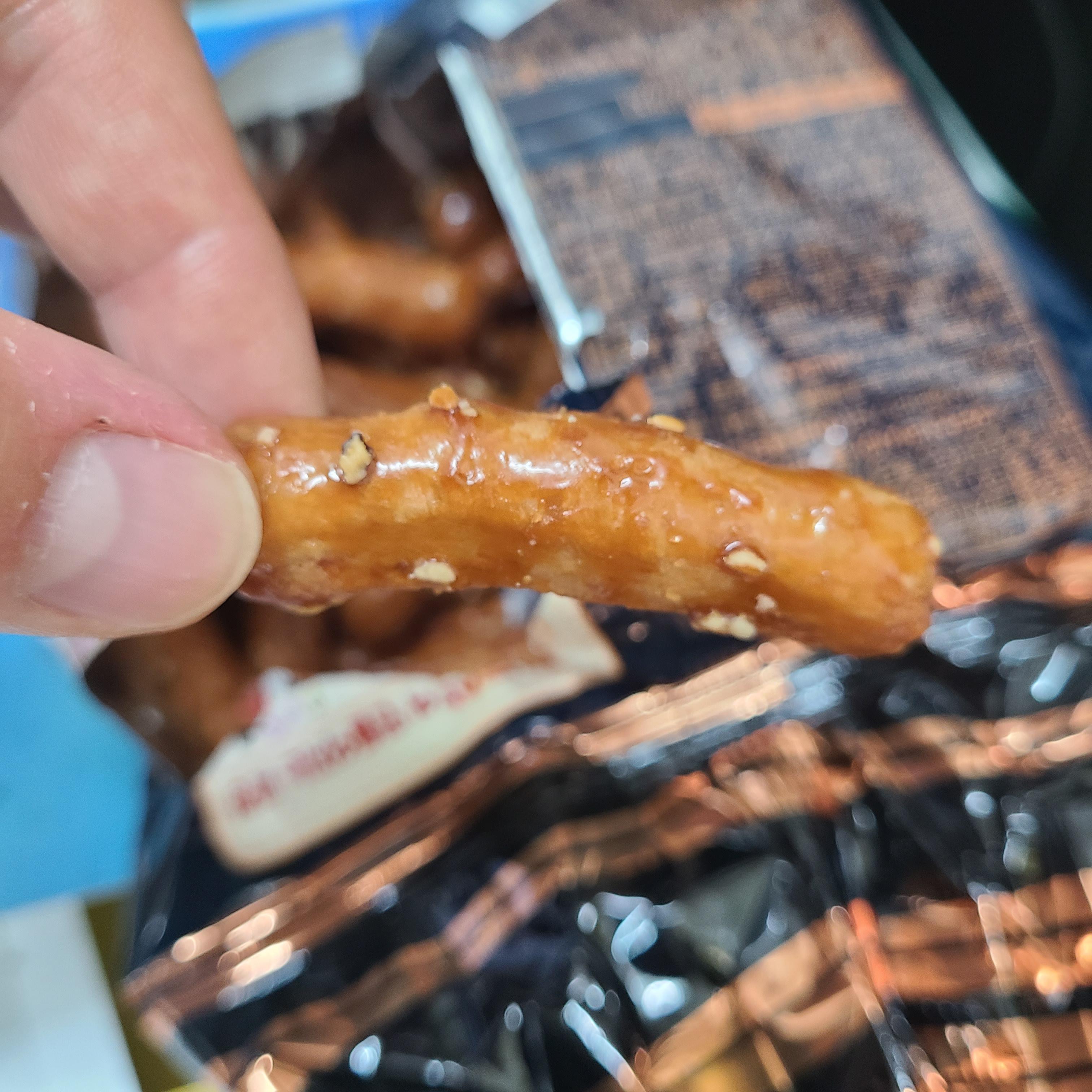 기존 맛동산에 비해 두께가 얇아지고 길이는 좀 길어졌다.