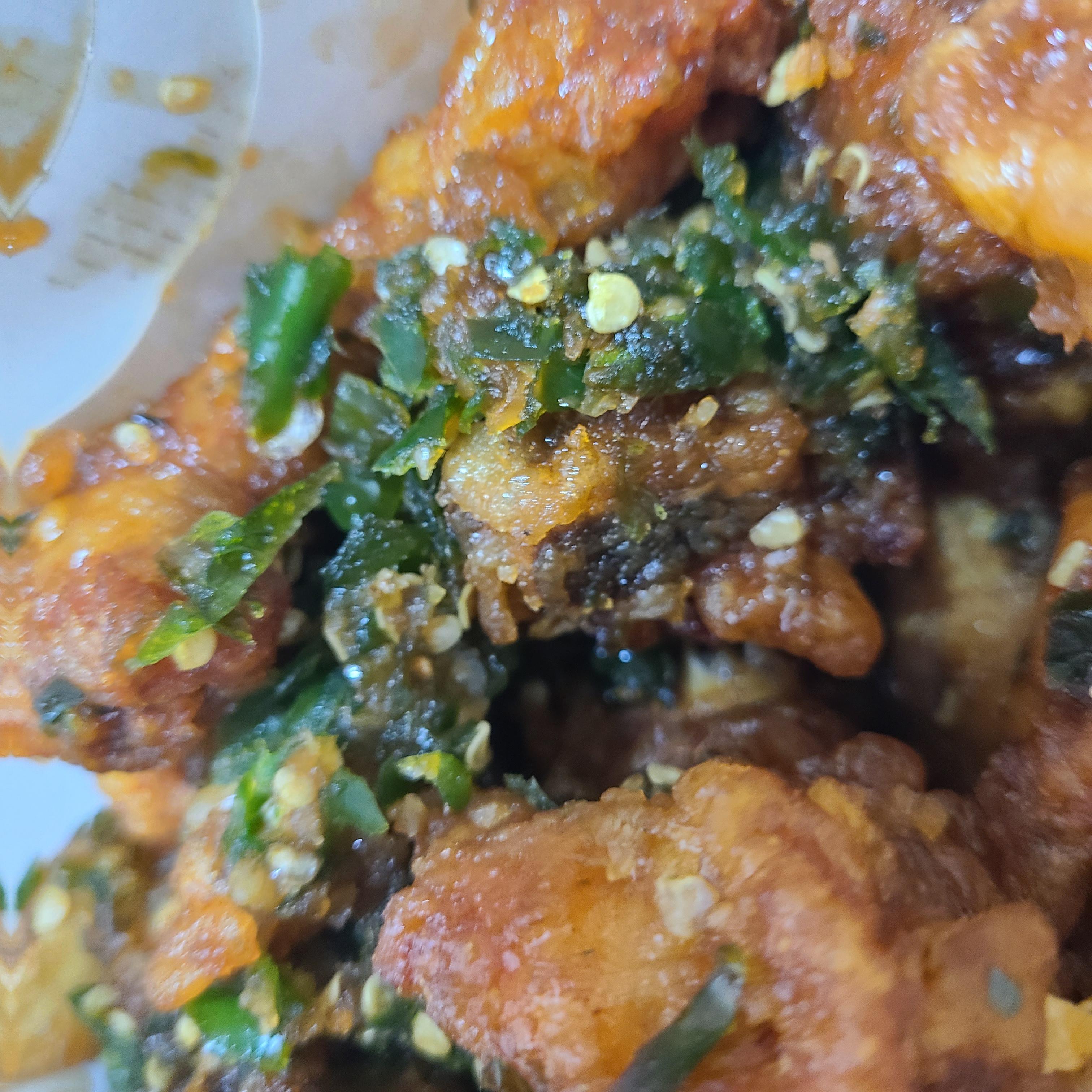 고추치킨은 말 그대로 다진 고추가 잔뜩 묻어져 있습니다!!