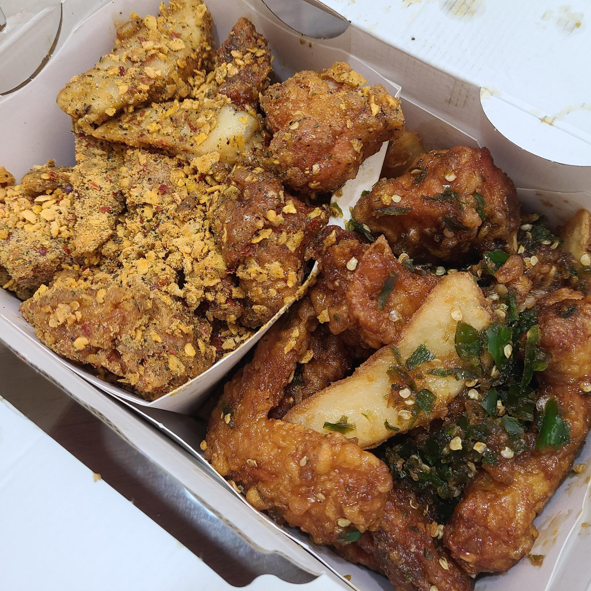 둘 다 기본적으로 매콤한 치킨이어서 많이 매울까 걱정되네요..