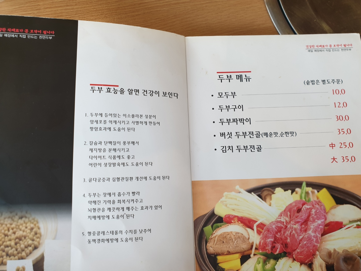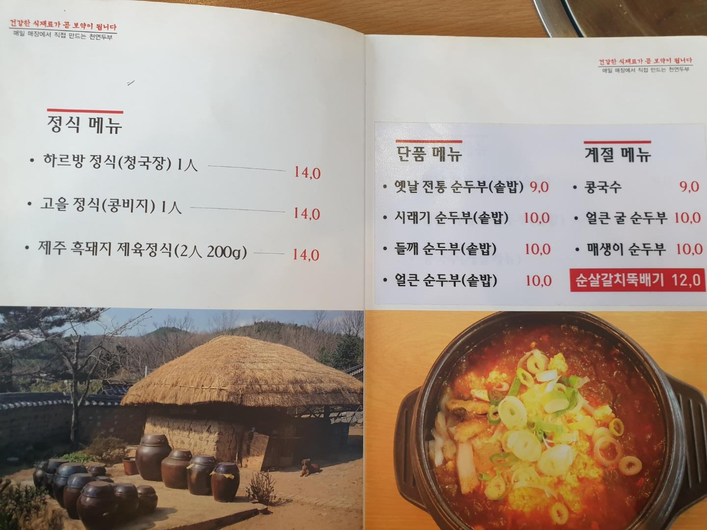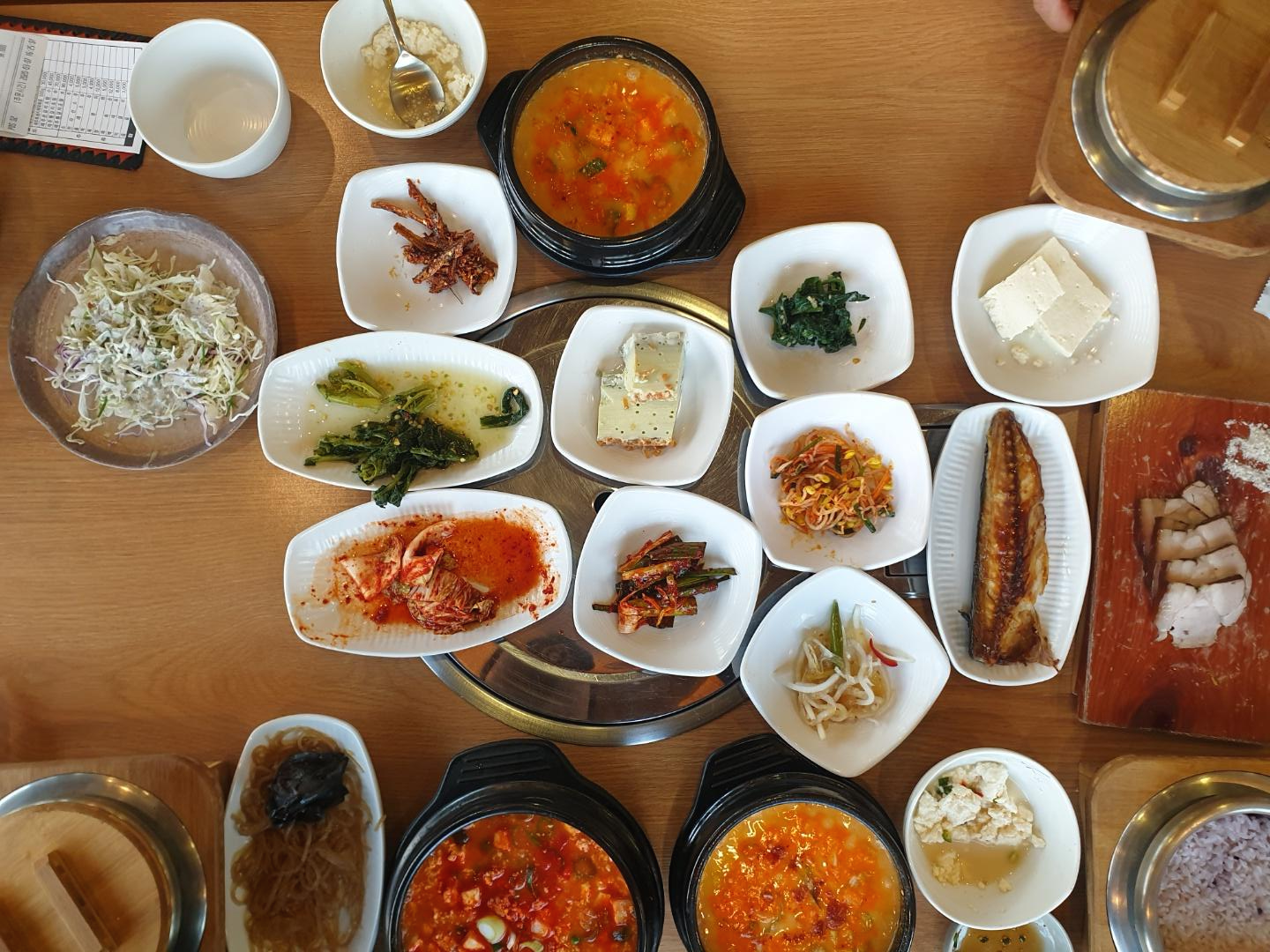 그래서 고을정식 2인 + 얼큰순두부 단품 1인 주문했어요~