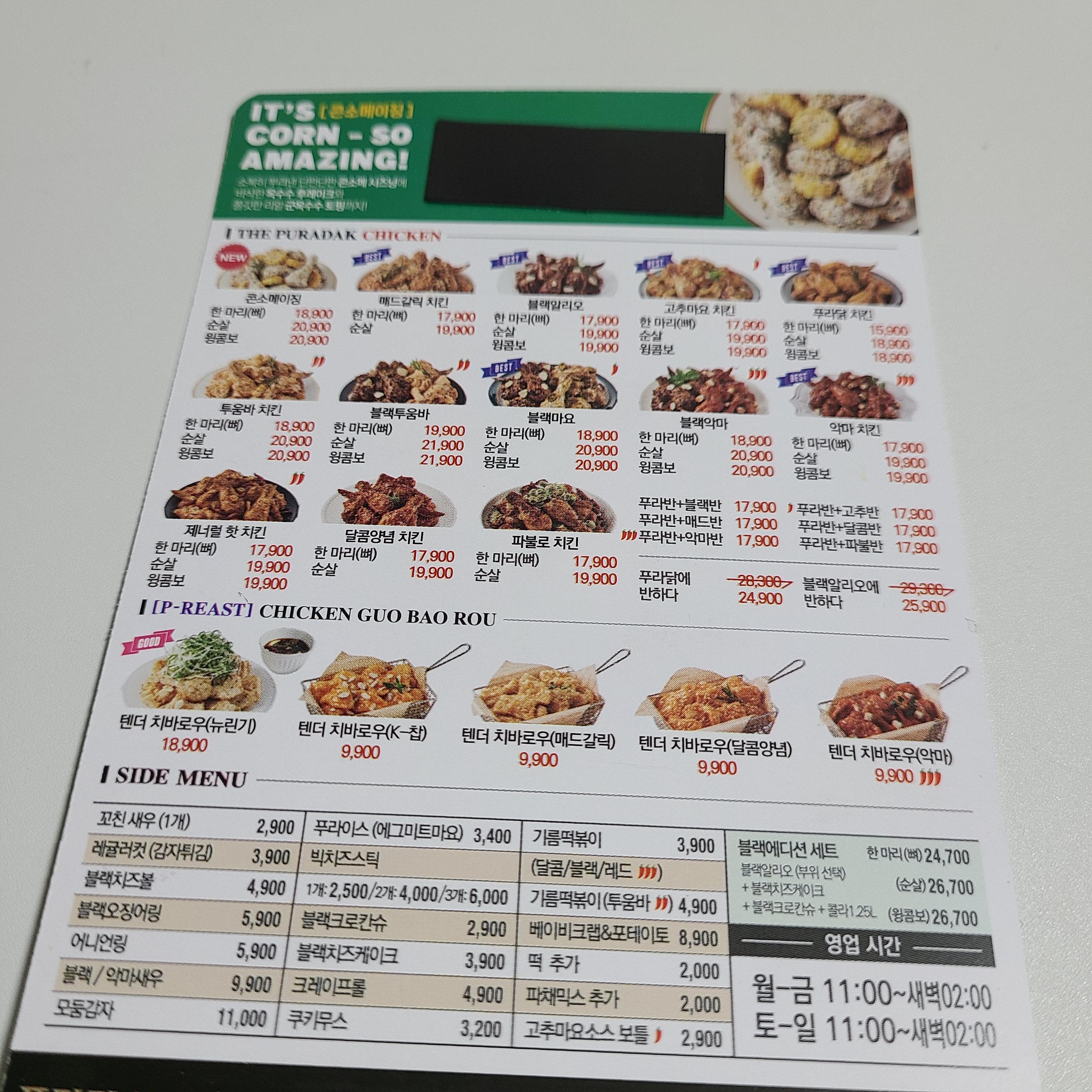 푸라닭 메뉴