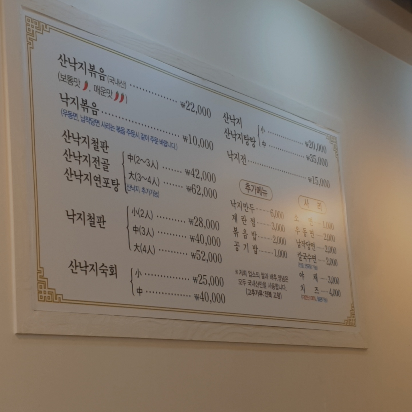 메뉴판 보시면 온통 낙지입니다 ㅋㅋㅋㅋ