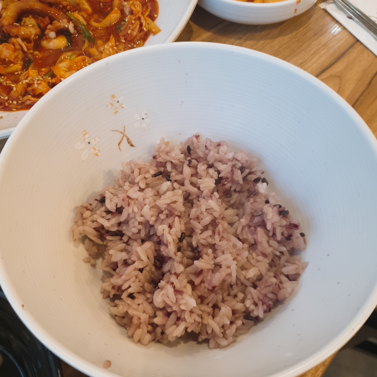 비벼먹을 수 있게 큰 접시에 담겨서 나오는 공깃밥!