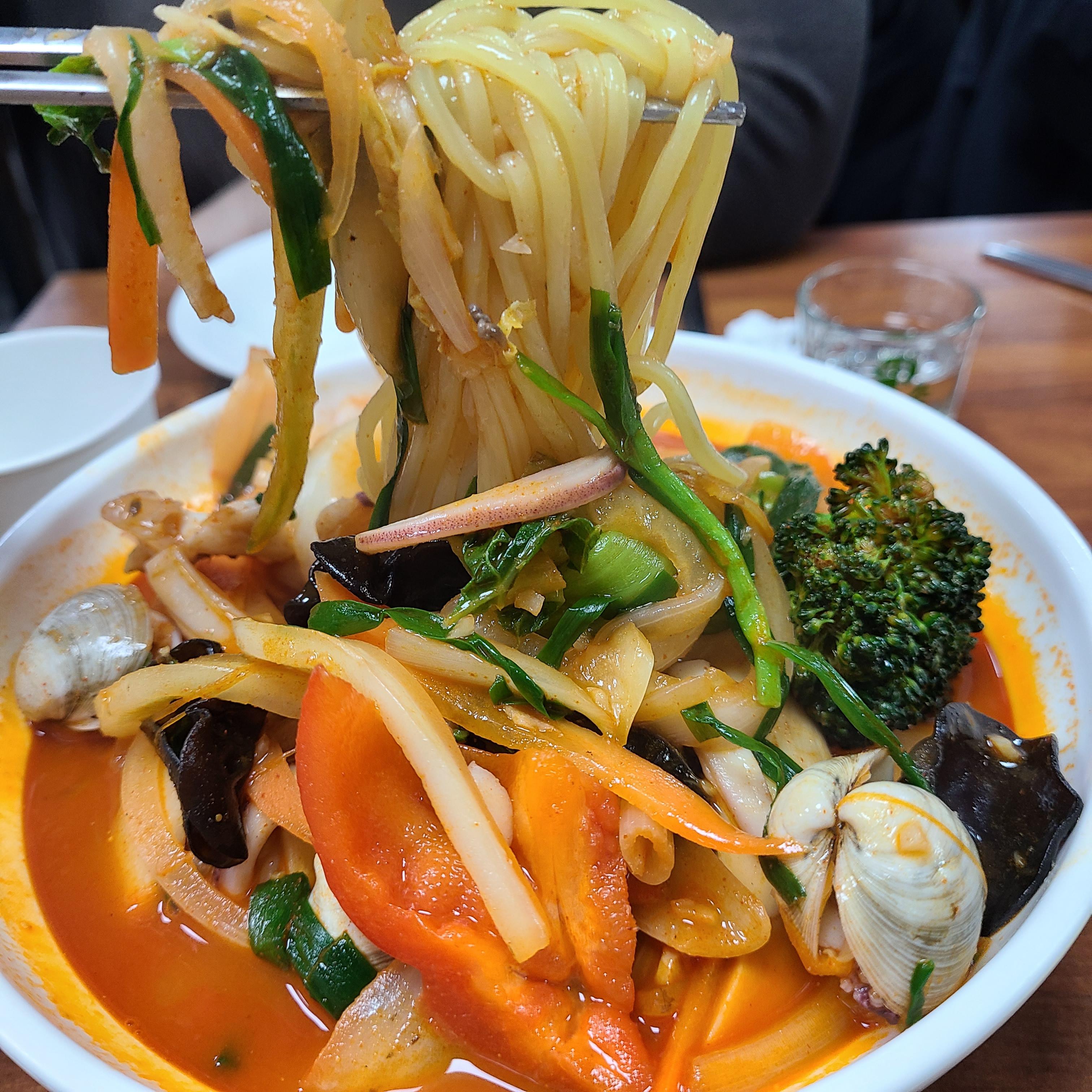 짬뽕 첫인상은 신선한 느낌이 받았습니다! 브로콜리와 피망이 큼지막하게 들어가 있습니다!