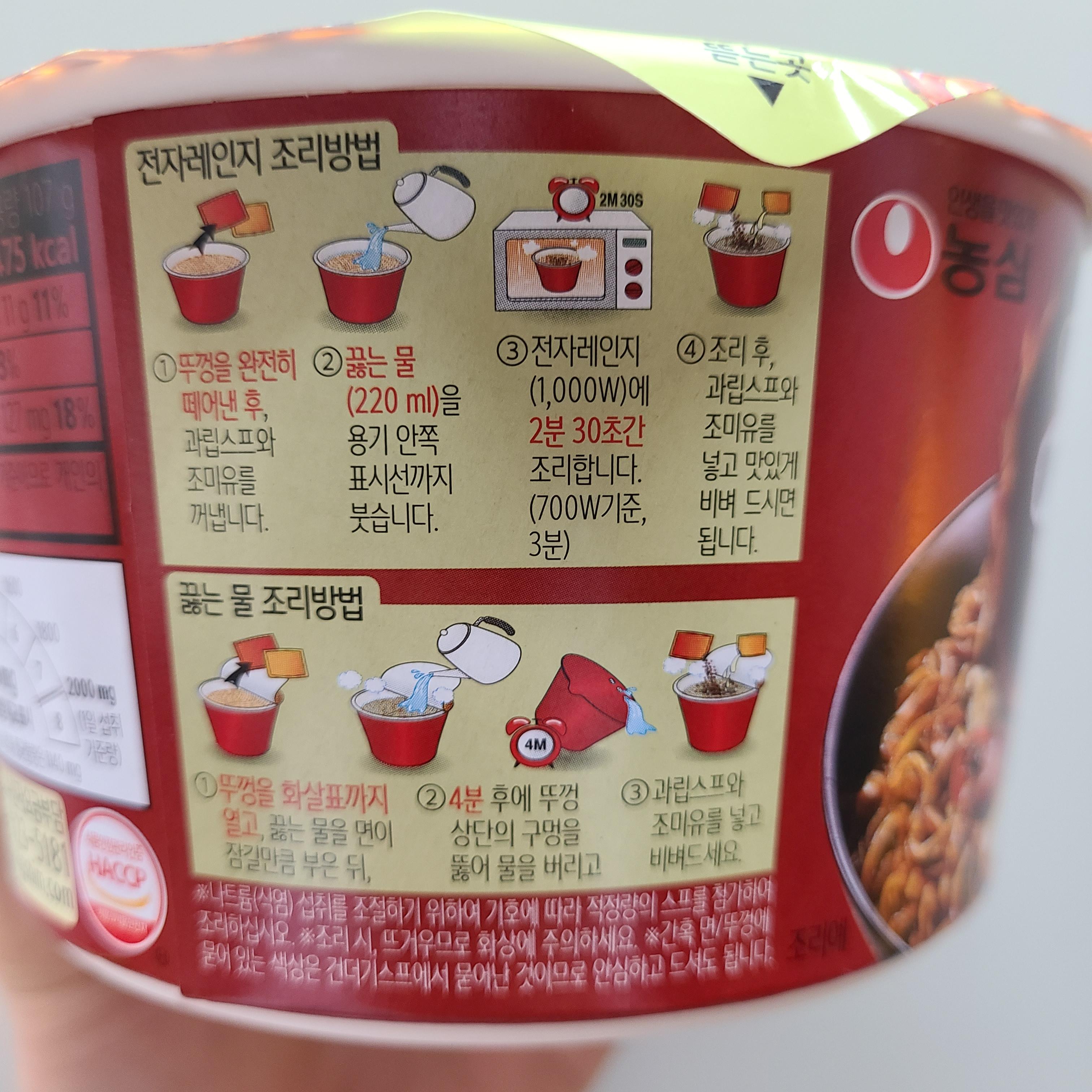 여타 다른 볶음 컵라면들과 비슷한 수준이네요.