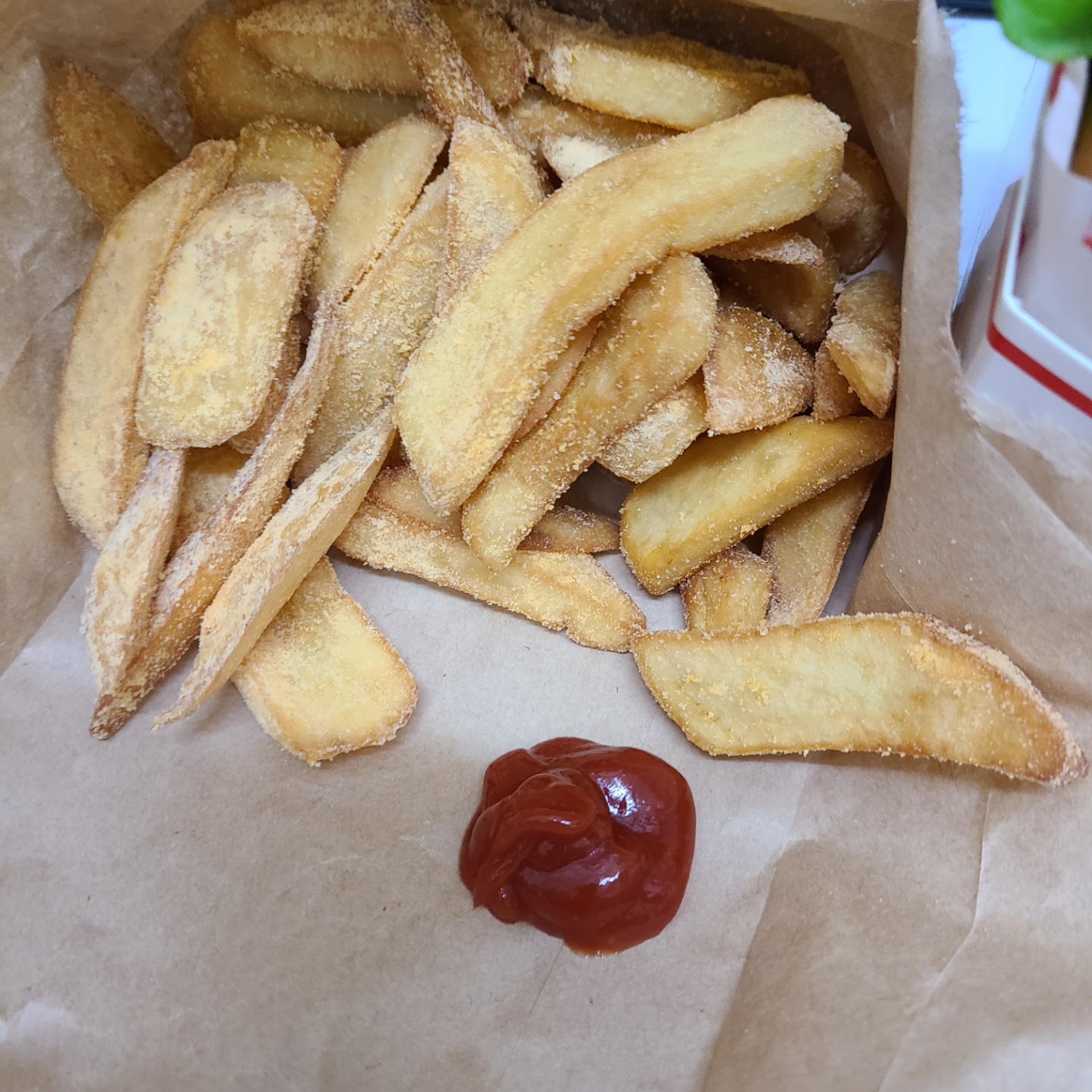 감자튀김 두툼한 스타일이며 조금 시간이 지나서 살짝 퍽퍽한 느낌이 들면서 콜라 생각이 엄청났습니다.