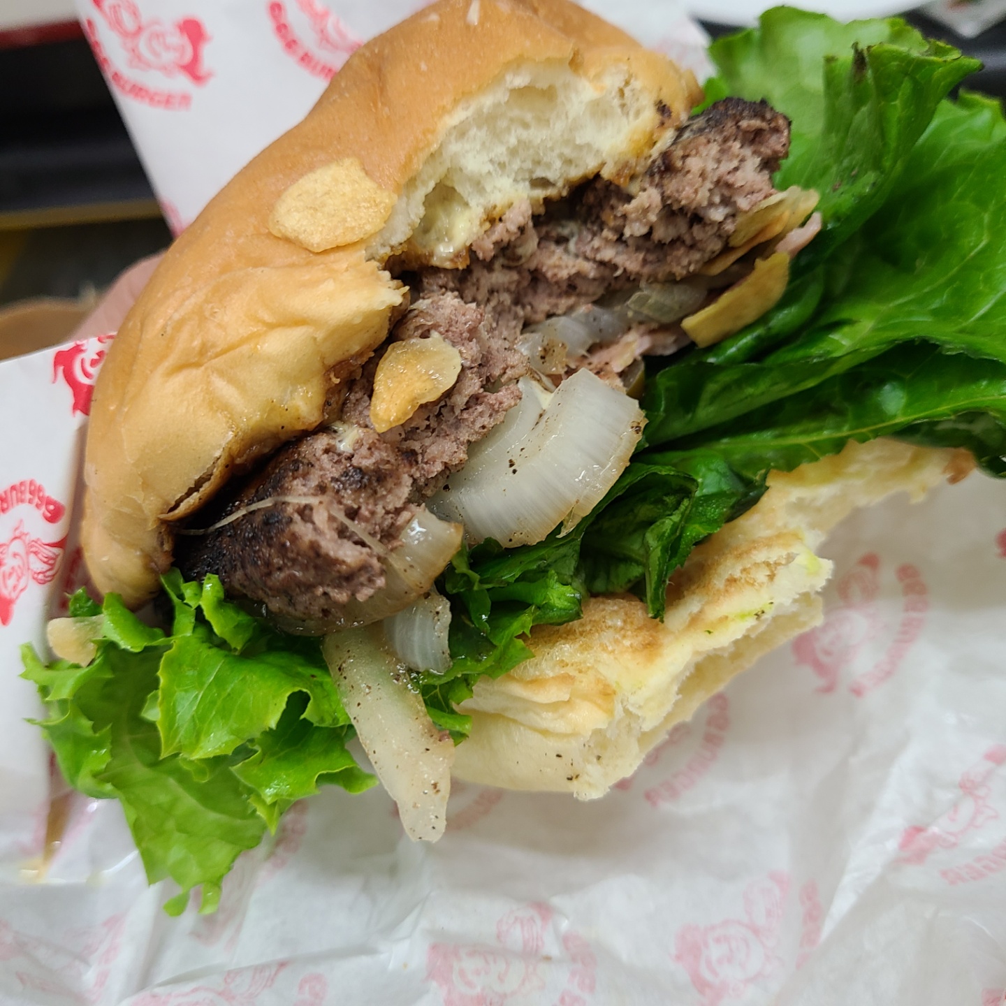 양상추, 양파, 베이컨, 패티 등등 모든 것이 먹기 좋은 비주얼입니다!