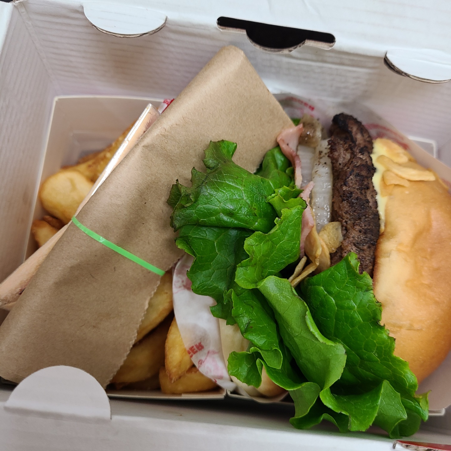 박스를 열어보니 감자튀김과 버거가 종이 용기에 담겨 알차게 정렬되어 있네용