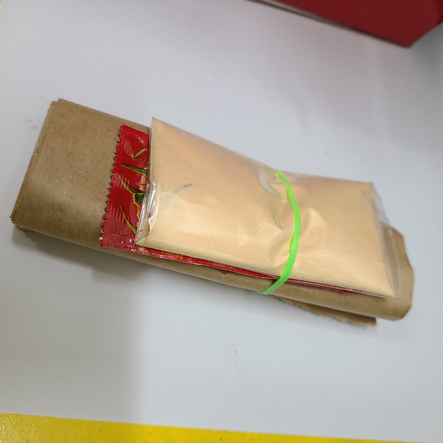 종이 용지를 하나 챙겨주셨습니다! 감튀와 소스를 넣고 흔들어 드시면 됩니다~
