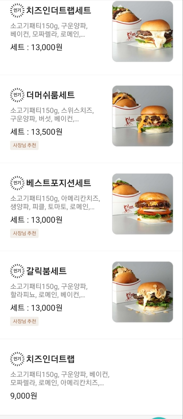 버거 종류가 다 인기라고 표기되어 있어서 뭐를 시켜야 할지 너무 고민되네요..ㅎㅎ