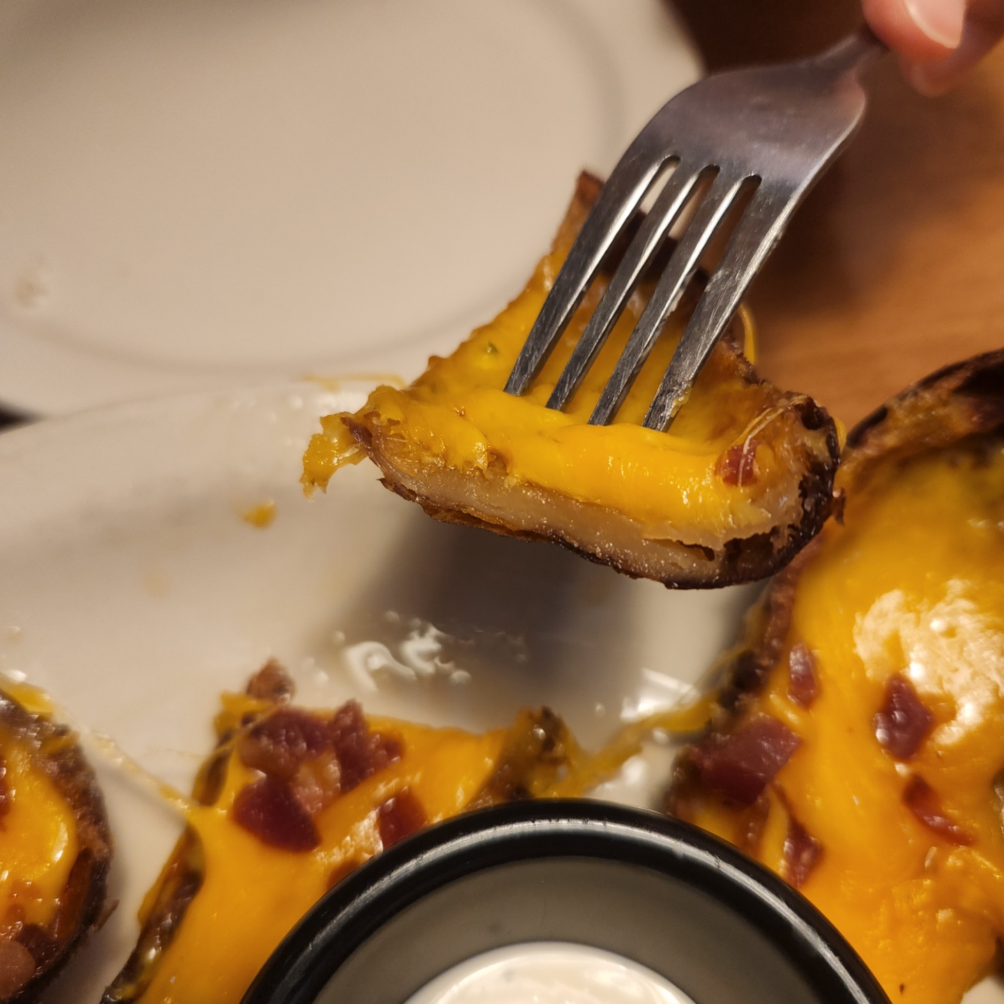베이컨, 치즈, 사워크림을 곁들인 구운 감자 슬라이드로 맛없을 수 없는 조합이었습니다.