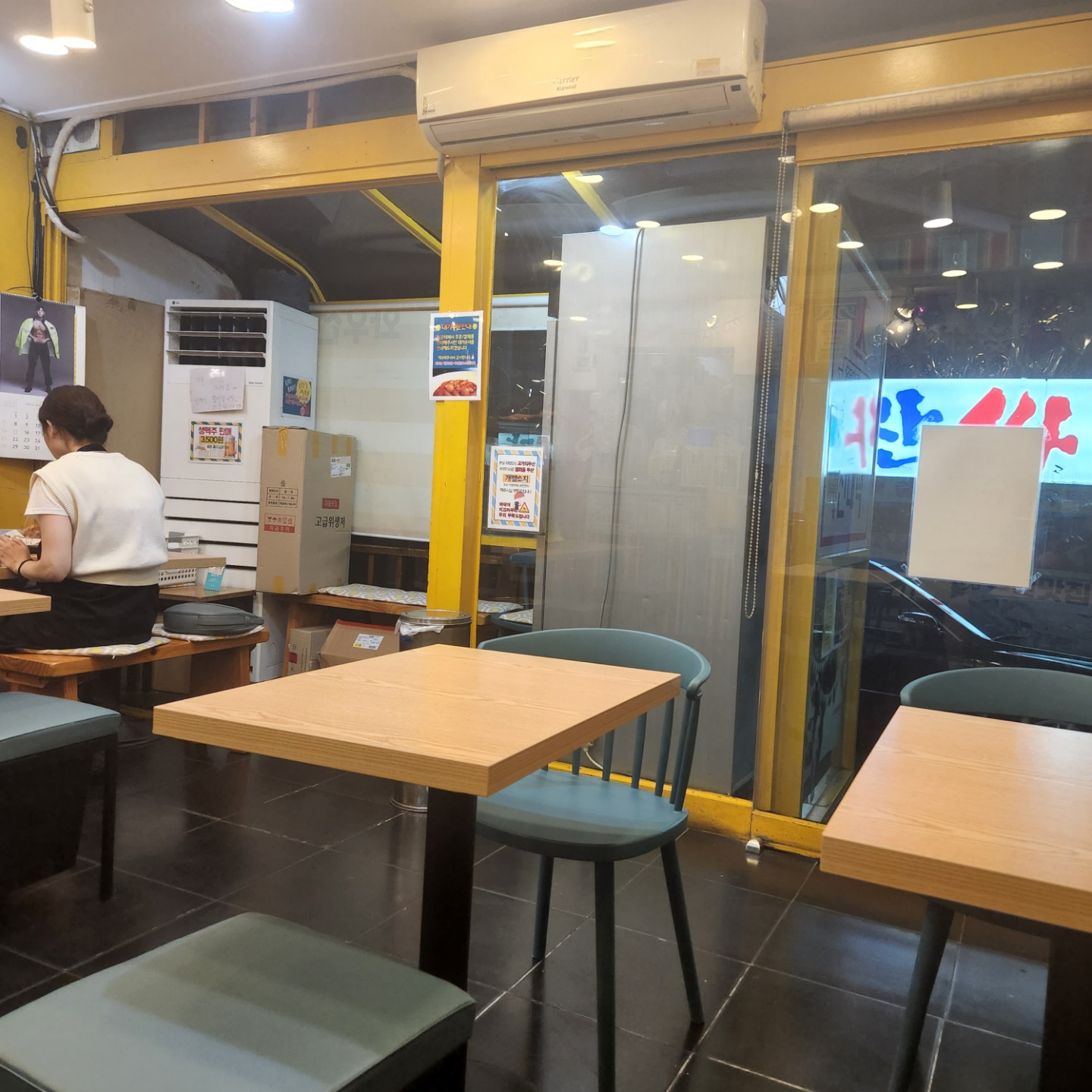 2인석 테이블 12개 정도 있었고요 간이 테이블로 4인이 오셔도 테이블을 붙이면 돼서 걱정 없습니다!